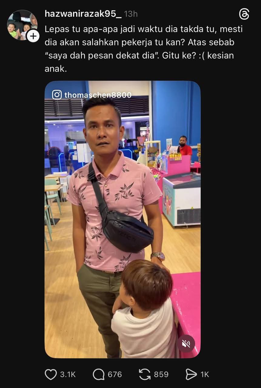 Tangan yang patut lindungi anak tu diserahkan pada playground mall, biar pekerja jaga.